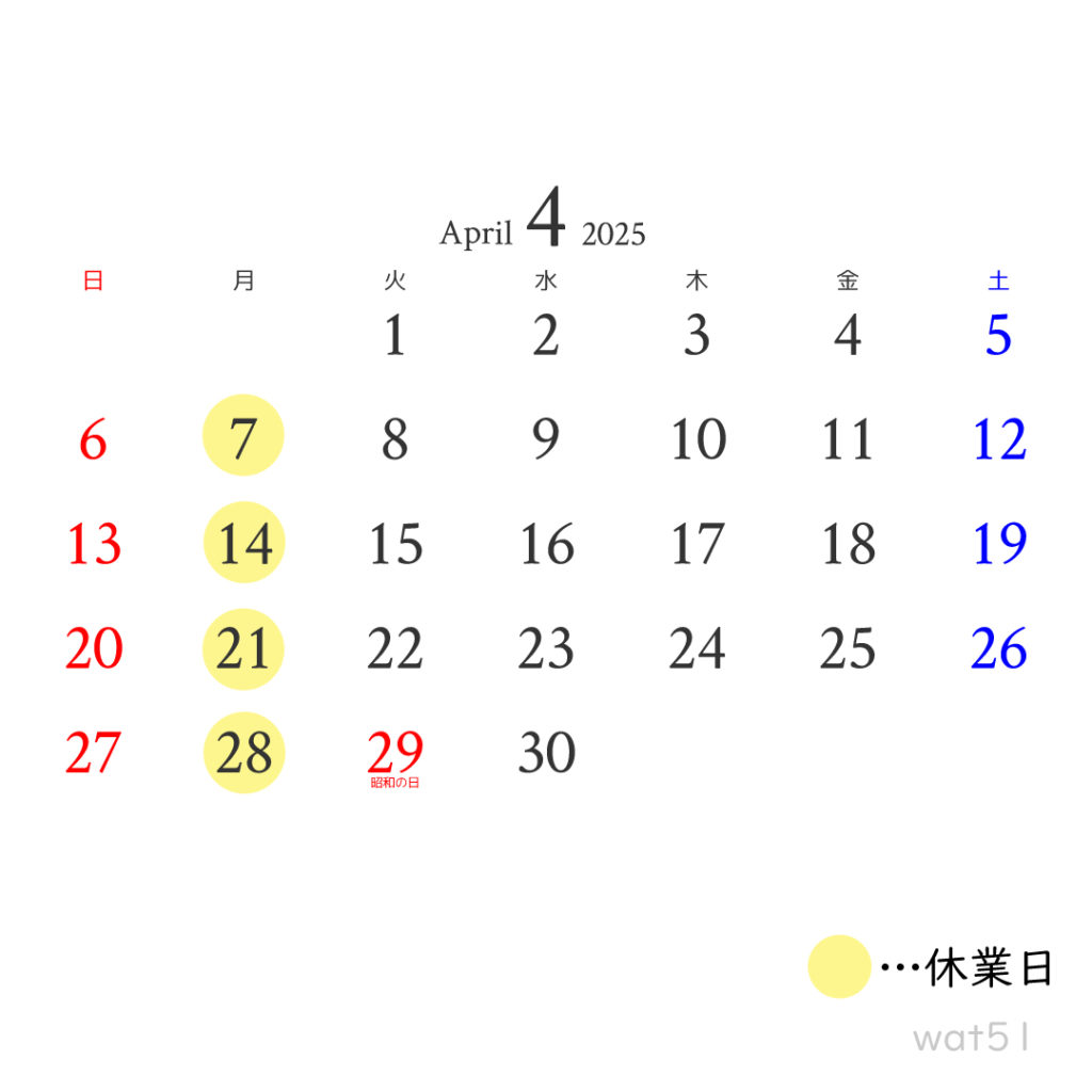 こんにちはwat51(ワットゴーイチ)です。3月の休業日をお知らせいたします。