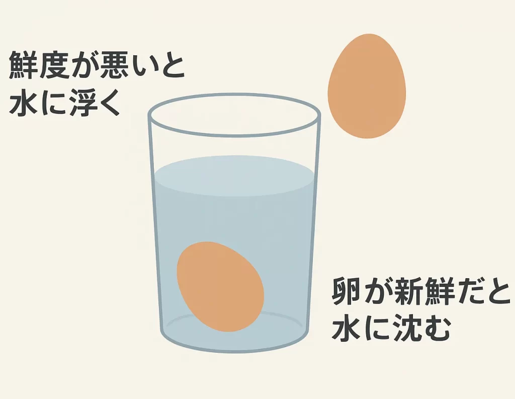 こんなふうに、水に沈むか浮くかで、ざっくり鮮度がわかると言われています。