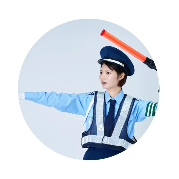 交通整理の方が車を誘導する。