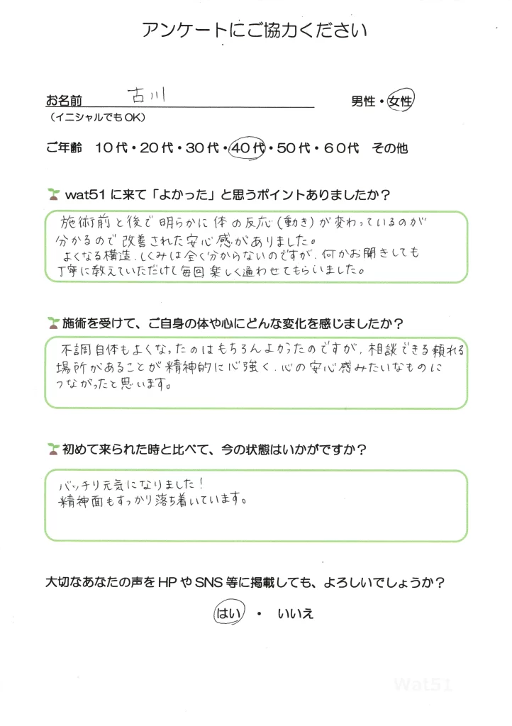 お客様の声|謎の体調不良と向き合って